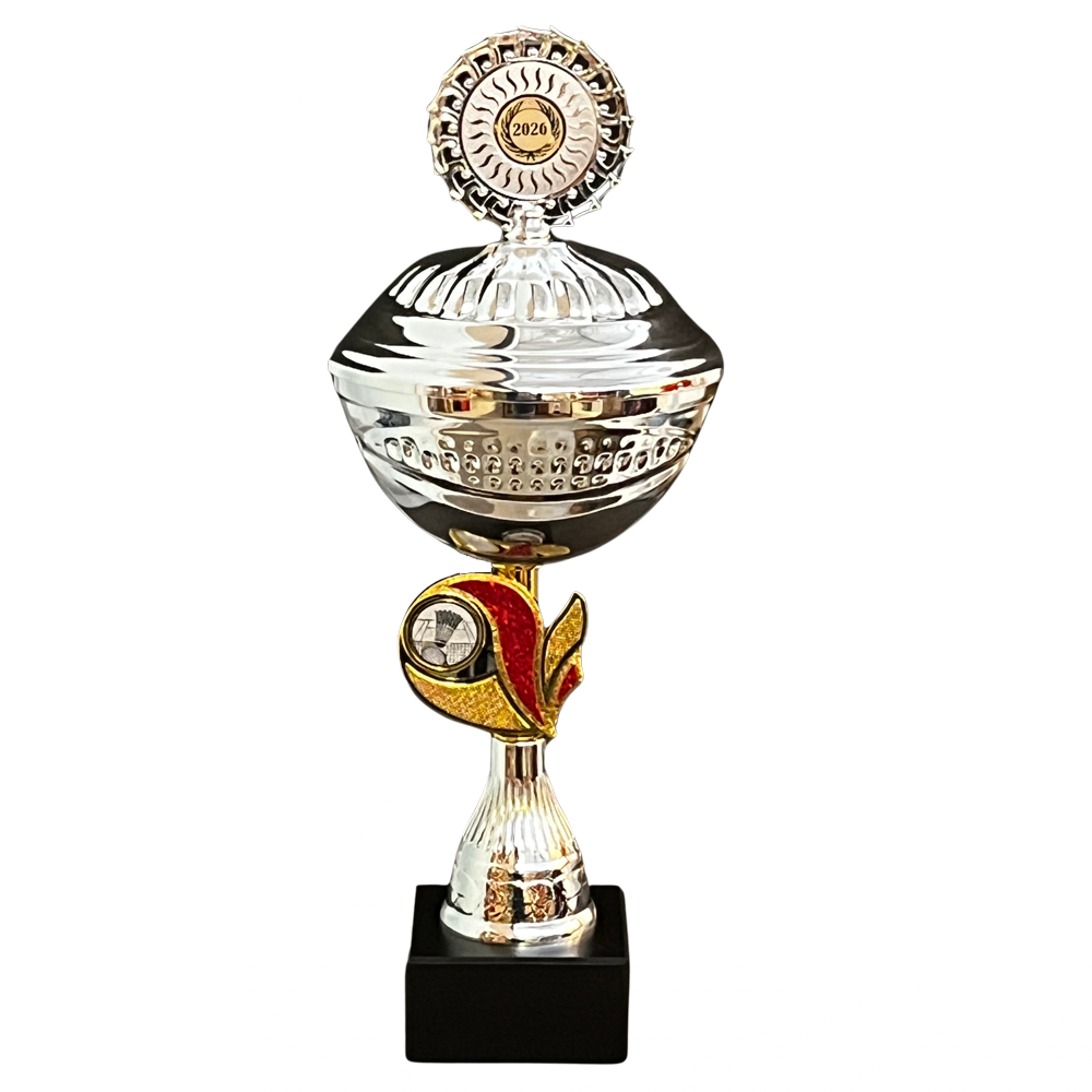 Beker Beets is een mooie metalen beker met deksel en leverbaal in 3 maten. Deze beker is perfect voor een winnaar van een toernooi of om als wisselbeker te gebruiken. De beker staat op een zwart stenen blok. De cup is bewerkt. In het midden van de trofee kunnen wij voor u een sportafbeelding of uw eigen logo/afbeelding drukken.