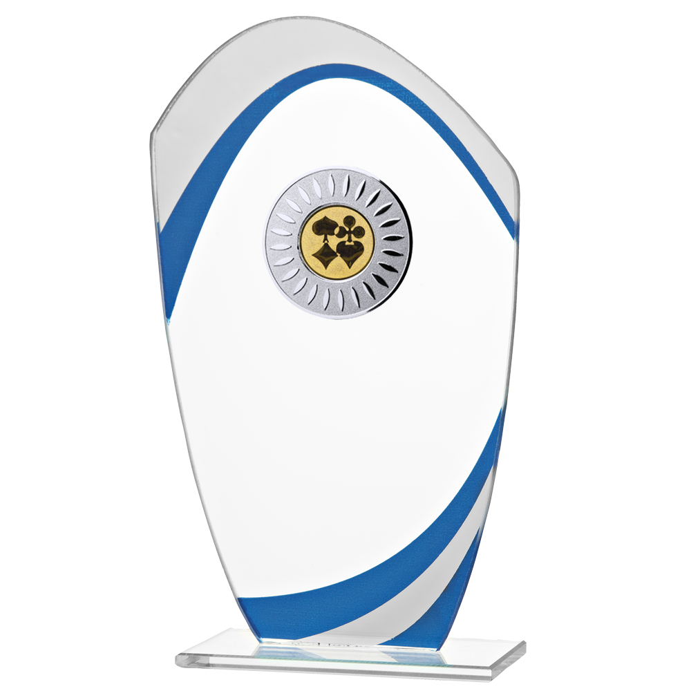 Glasstandaard Porto is een standaard van glas in de kleur blank en blauw. Het glas heeft ook een randje van spiegelglas. De tekst wordt gegraveerd op een plaatje welke gemonteerd wordt op de glasstandaard.