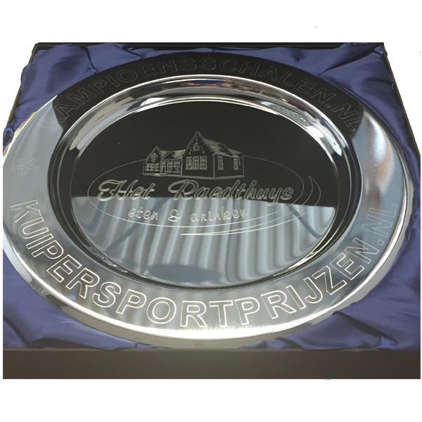 Wij bieden de exclusieve service om op de rand van de kampioensschaal te graveren, waardoor uw persoonlijke boodschap tijdloos vastgelegd worden. Voor langere teksten passen we rechte regels graveren toe, zodat de essentie van uw boodschap perfect tot zijn recht komt. Dit vakmanschap is inbegrepen bij de aanschaf van uw schalen.